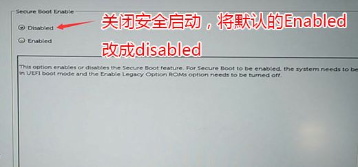 1、开机一直按F2进入BIOS,按F2进入BIOS界面,切换到secure BOOT页面,选择secure Boot Enable按回车改成Disabled,如图: