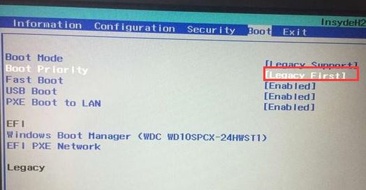 5、再把Boot Priority设置成Legacy First,按F10弹出窗口选择yes回车;