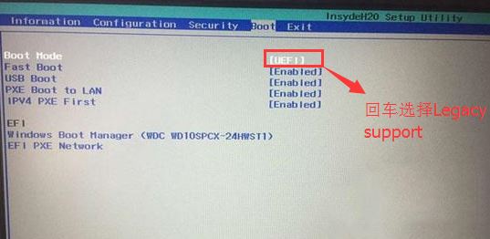 4、切换到Boot,把Boot Mode从UEFI改成Legacy Support;