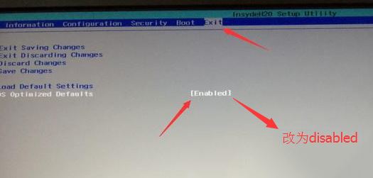 2、转到Exit,把OS Optimized Defaults设置为Disabled或Other OS,如下图所示;