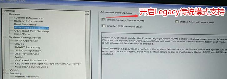 戴尔Inspiron 15-7560预装win10改win7步骤二:BIOS修改与U盘启动