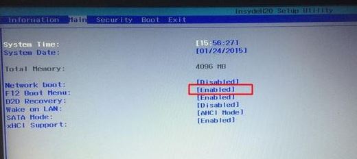 4、转到Main,选择F12 Boot Menu回车,设置为Enabled,按F10选择Yes回车保存修改,如下图所示;