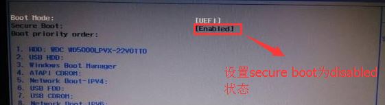 返回BOOT选项,将Secure BOOT默认enabled为disabled,关闭安全启动