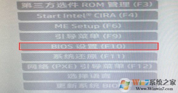 1、开机一直按按ESC,出现以下界面后,再按F10进入BIOS,如下图所示;