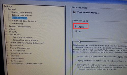 注:戴尔笔记本每做一步BIOS更改记得应用一下
