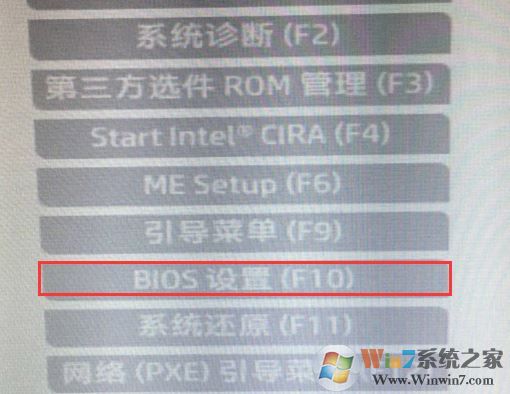 1、开机一直按按ESC,出现以下界面后,再按F10进入BIOS,如下图所示;