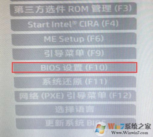 1、开机一直按按ESC,出现以下界面后,再按F10进入BIOS,如下图所示;