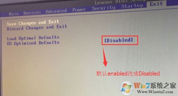 2、转到Exit,把OS Optimized Defaults设置为Disabled;