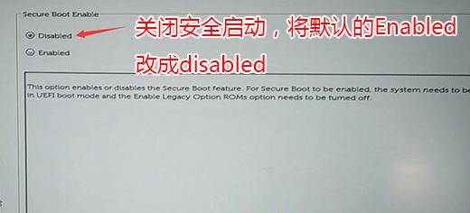 1、开机一直按F2进入BIOS,按F2进入BIOS界面,切换到secure BOOT页面,选择secure Boot Enable按回车改成Disabled,如图所示;