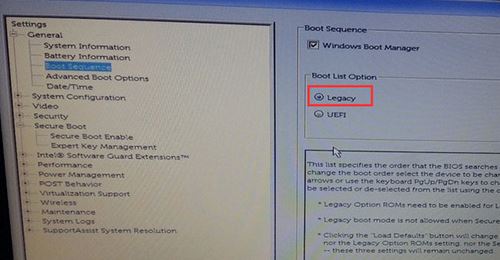 注:戴尔笔记本每做一步BIOS更改记得应用一下
