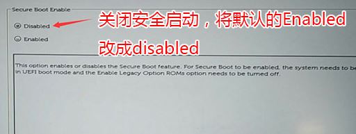 1、开机一直按F2进入BIOS,按F2进入BIOS界面,切换到secure BOOT页面,选择secure Boot Enable按回车改成Disabled,如图所示;