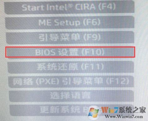 1、开机一直按按ESC,出现以下界面后,再按F10进入BIOS,如图:
