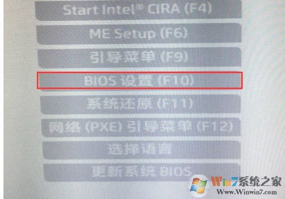 1、开机一直按按ESC,出现以下界面后,再按F10进入BIOS,如图: