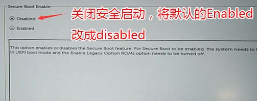 1、开机一直按F2进入BIOS,按F2进入BIOS界面,切换到secure BOOT页面,选择secure Boot Enable按回车改成Disabled,如图所示;