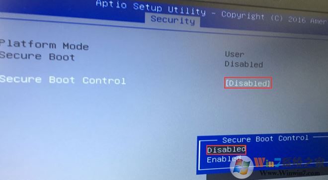 1、重启笔记本按esc进入BIOS设置,然后按F7进入高级模式,按→方向键移动到Security,选择Secure Boot,然后回车进入把Secure Boot control选enabled改为disabled关闭安全启动,然后按F10保存重启;