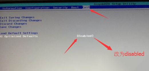 2、转到Exit,把OS Optimized Defaults设置为Disabled或Other OS;