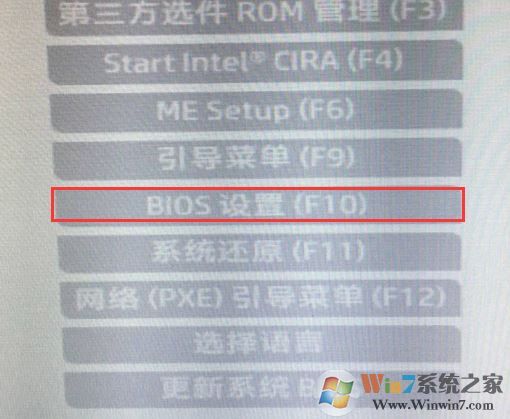 1、开机一直按按ESC,出现以下界面后,再按F10进入BIOS,如下图所示;