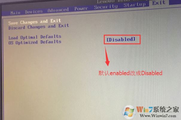 2、转到Exit,把OS Optimized Defaults设置为Disabled;
