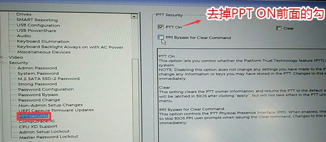 注:戴尔笔记本每做一步BIOS更改记得应用一下