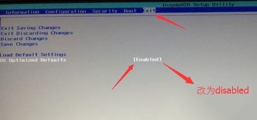 2、转到Exit,把OS Optimized Defaults设置为Disabled或Other OS,如下图所示;