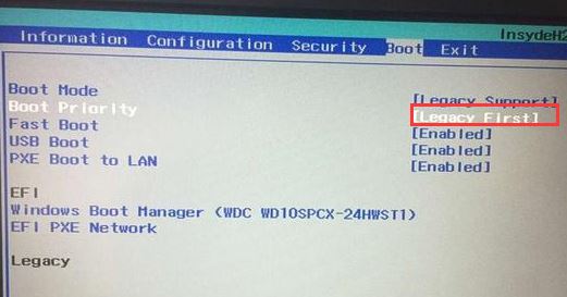 5、再把Boot Priority设置成Legacy First,按F10弹出窗口选择yes回车;