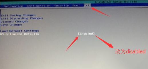 2、转到Exit,把OS Optimized Defaults设置为Disabled或Other OS,如下图所示;