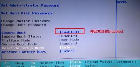 1、开机一直按F2或(FN+F2)进入BIOS,按→方向键切换到Security,选择Secure Boot回车设置成Disabled,如下图所示;