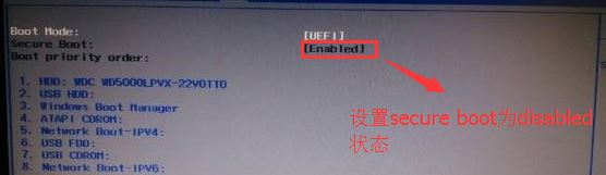 返回BOOT选项,将Secure BOOT默认enabled为disabled,关闭安全启动