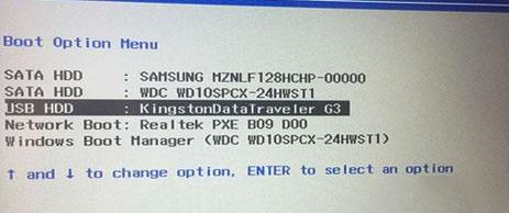 6、插入制作好的U盘启动盘,重启按F12或FN+F12调出启动管理对话框,选择USB HDD识别到U盘启动进入PE,回车进入PE: