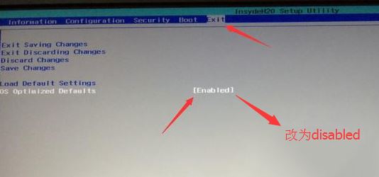 2、转到Exit,把OS Optimized Defaults设置为Disabled或Other OS,如下图所示;