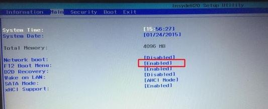 4、转到Main,选择F12 Boot Menu回车,设置为Enabled,按F10选择Yes回车保存修改,如下图所示;