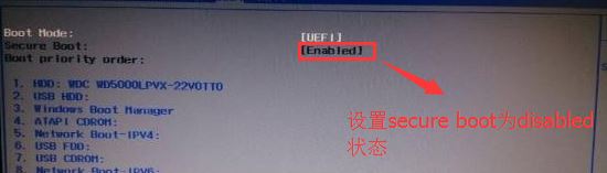 返回BOOT选项,将Secure BOOT默认enabled为disabled,关闭安全启动