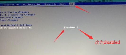 2、转到Exit,把OS Optimized Defaults设置为Disabled或Other OS;