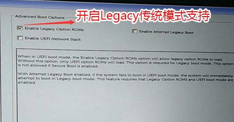 2、切换到Advanced Boot Options将右边的Enable legacy option roms选项打勾,如下图所示;