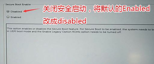 1、开机一直按F2进入BIOS,按F2进入BIOS界面,切换到secure BOOT页面,选择secure Boot Enable按回车改成Disabled,如图所示;
