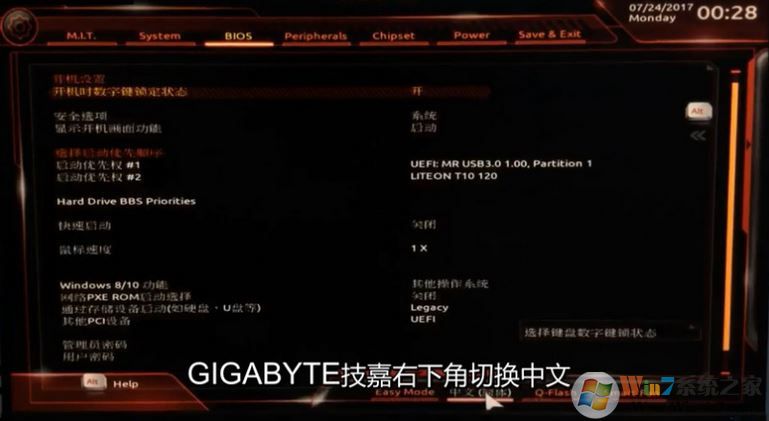 技嘉H310M-DS2V装win7教程步骤二:BIOS修改与U盘启动