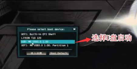 5、插入U盘启动盘,重启不停的按F11,选择识别到U盘启动项(默认有uefi U盘启动和传统模式,这里记得要uefi启动的就要制作支持uefi的U盘启动),回车,如图所示;