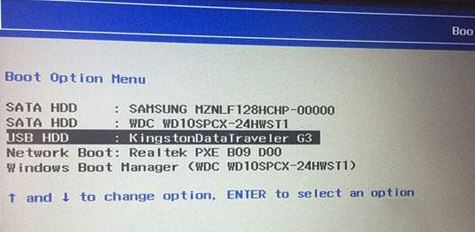 5、插入制作好的U盘启动盘,重启按F12或FN+F12调出启动管理对话框,选择USB HDD识别到U盘启动进入PE,回车;