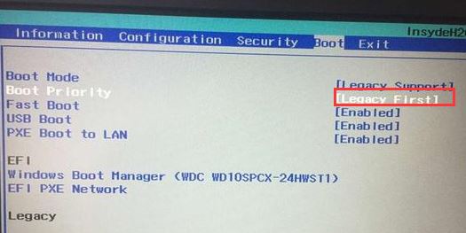 5、再把Boot Priority设置成Legacy First,按F10弹出窗口选择yes回车;