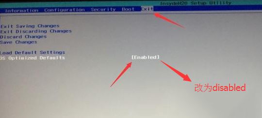 2、转到Exit,把OS Optimized Defaults设置为Disabled或Other OS,如下图所示;
