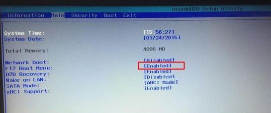 4、转到Main,选择F12 Boot Menu回车,设置为Enabled,按F10选择Yes回车保存修改,如下图所示;