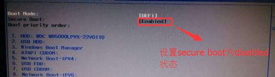 返回BOOT选项,将Secure BOOT默认enabled为disabled,关闭安全启动