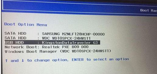 5、插入制作好的U盘启动盘,重启按F12或FN+F12调出启动管理对话框,选择USB HDD识别到U盘启动进入PE,回车;