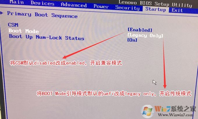 3、切换到Boot,把Boot Mode从UEFI改成Legacy only引导模式,再把csm默认disabled改成enabled,开启兼容模式,如下图所示;