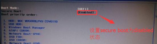 返回BOOT选项,将Secure BOOT默认enabled为disabled,关闭安全启动