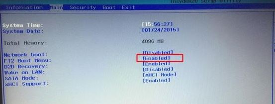 4、转到Main,选择F12 Boot Menu回车,设置为Enabled,按F10选择Yes回车保存修改,如图:
