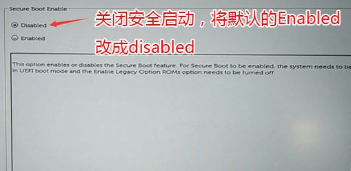 1、开机一直按F2进入BIOS,按F2进入BIOS界面,切换到secure BOOT页面,选择secure Boot Enable按回车改成Disabled,如图所示;