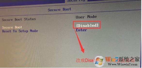 3、接下来,我们再按回车,把Secure Boot项选择为Disabled(关闭),如果要开启,选择为Enabled xiuchufang.com整理