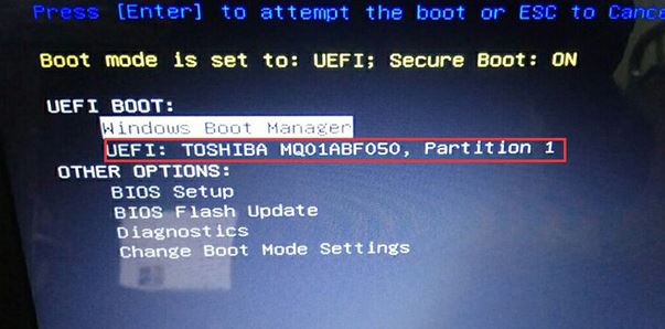 6、插入U盘启动盘,重启时不停的按下f12,打开快速引导菜单,选择识别的U盘启动回车从U盘启动,如图: