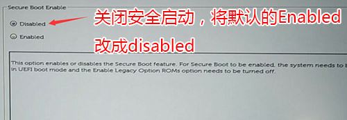 1、开机一直按F2进入BIOS,按F2进入BIOS界面,切换到secure BOOT页面,选择secure Boot Enable按回车改成Disabled,如图所示;